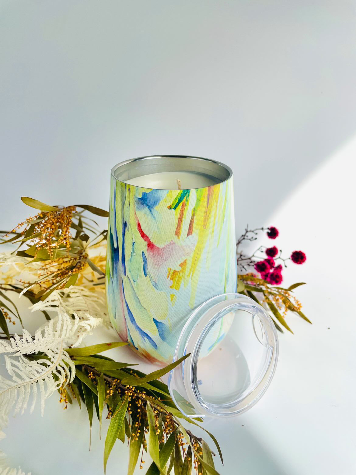 Each candle comes with a complimentary plastic lid, making it perfect for hot coffee, iced drinks, or even a cheeky glass of wine. It's the gift that coffee lovers (and wine enthusiasts) didn't know they needed—luxurious fragrance first, sustainable drinkware second.